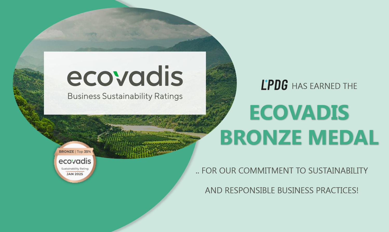 We've been awarded the EcoVadis Bronze Medal, ranking us in the top 35% of certified companies worldwide! 🌍💡 EcoVadis is all about measuring how companies perform in sustainability, ethics, labor & human rights, and responsible sourcing—so earning this recognition is a big deal for us. It shows that we're on the right track when it comes to making a positive impact. Huge thanks to our team and partners who helped make this happen! This is just the beginning, and we’re excited to keep pushing for even more progress. #EcoVadis #Sustainability #MakingAnImpact #LPDG